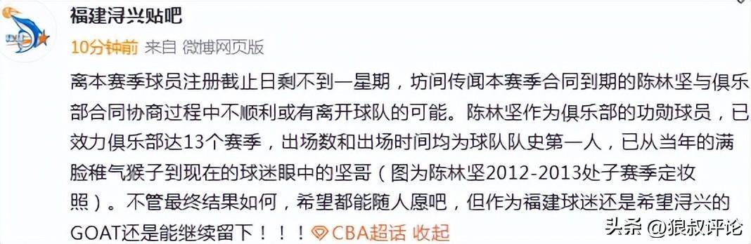 除了这名博主之外,篮球记者“LindaWooo”也在社媒发文:陈林坚的续约问题,仍未完全确定下来,需要等的消息。